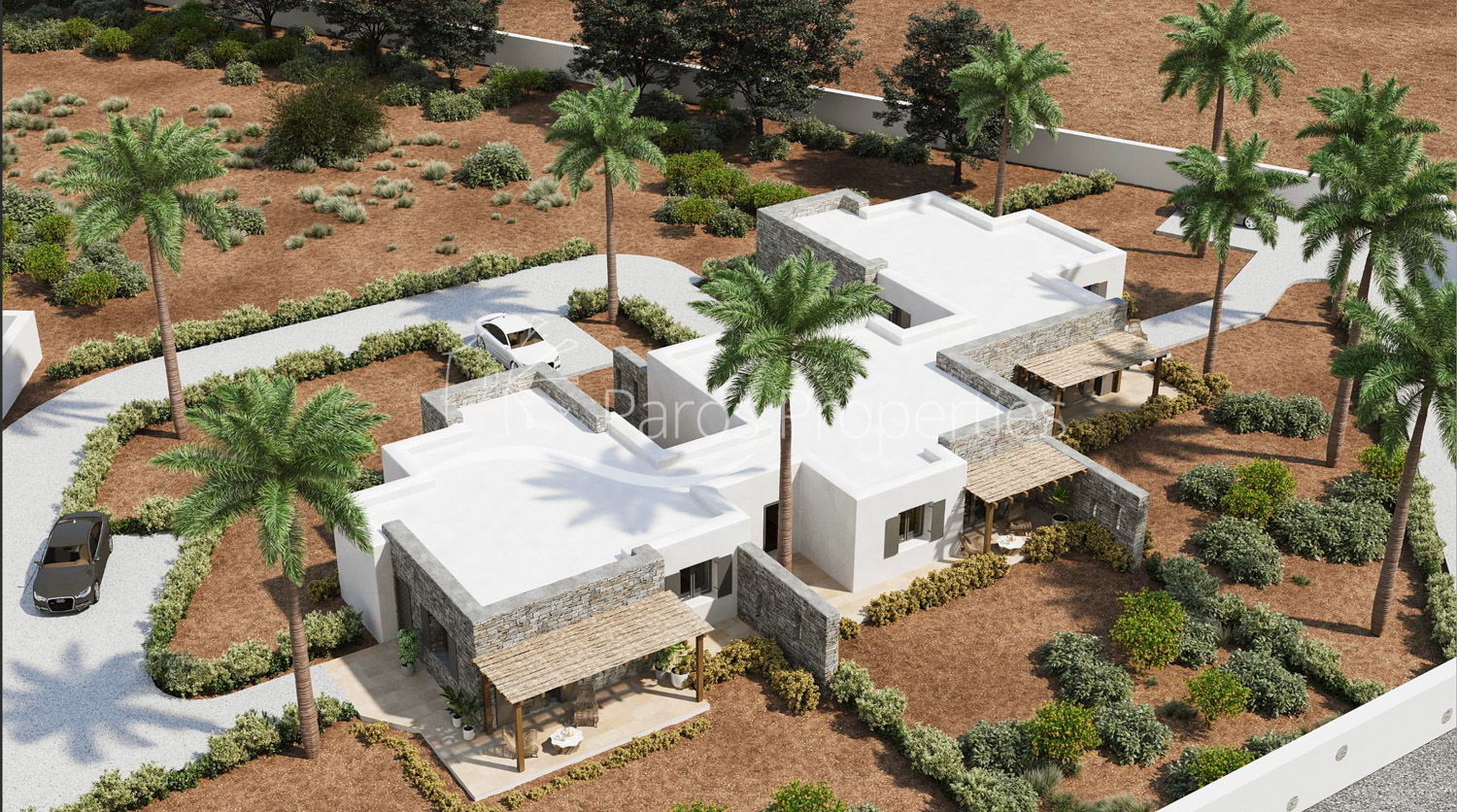 Το ακίνητο είναι υπό κατασκευή σε αγροτεμάχιο 8 στρεμμάτων, έχει αναλογία επί του οικοπέδου περίπου 2000 τ.μ. και απολαμβάνει ανοιχτή θέα προς τη θάλασσα, συνδυάζοντας σύγχρονη κυκλαδίτικη αρχιτεκτονική με ενεργειακά αποδοτική κατασκευή και λειτουργικούς χώρους διαβίωσης.